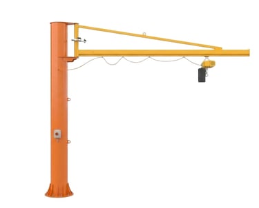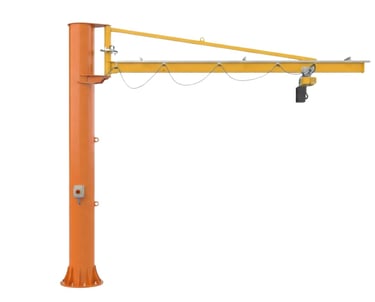 La gru a bandiera a colonna, stabile e facile da utilizzare, è adatta anche a portate elevate e sbracci notevoli.