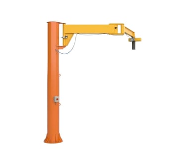 Una gru a bandiera a colonna semplice nelle esigenze di impiego, con costo contenuto, manutenzione ridotta e facilità di utilizzo, che consente una movimentazione rapida e immediata.