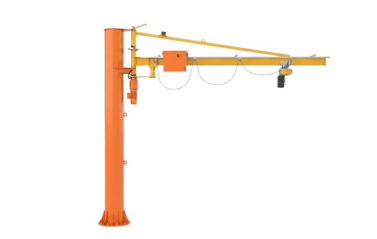 Gru a bandiera a colonna con braccio in trave a sbalzo e rotazione elettrica a 360° su ralla