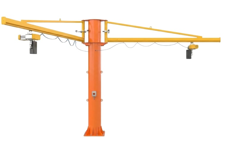 Questa tipologia di impianto risolve inoltre in modo efficace le esigenze di movimentazione in spazi angusti, dove altri mezzi di sollevamento risulterebbero difficilmente utilizzabili. È disponibile in diverse configurazioni, pensate per rispondere a specifiche esigenze di spazio e prestazione: con braccio singolo o doppio, in trave a sbalzo o con tiranti, con braccio snodato o con rotazione su ralla.