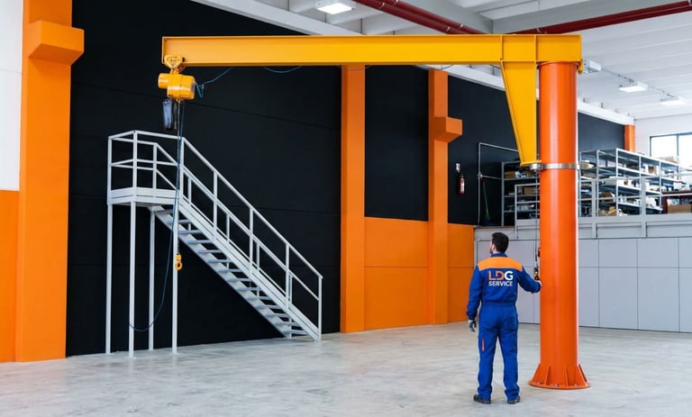 Gru a bandiera pratiche e versatili, ideali per la movimentazione di carichi leggeri.