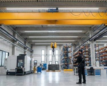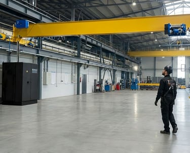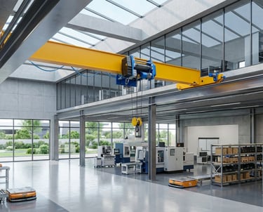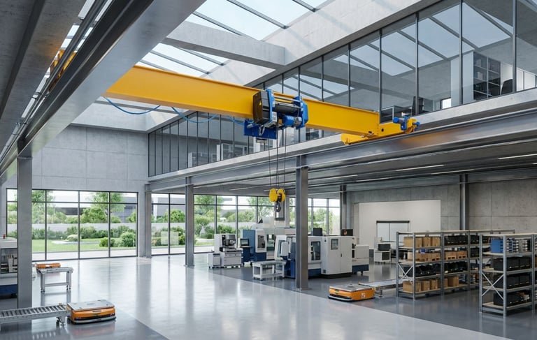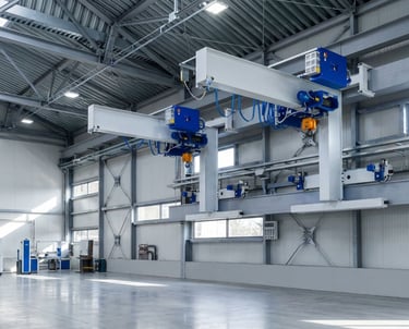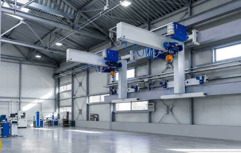La gru a ponte sospesa monotrave con scorrimento motorizzato è progettata per la movimentazione costante e sicura di carichi leggeri e medio-pesanti, senza gravare sull’operatore e lasciando completamente libero il suolo.
